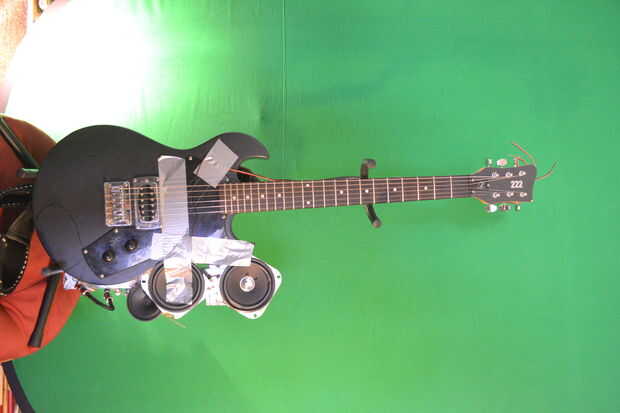 durante una tormenta reciente, esta guitarra eléctrica abusada se encontró en la acera, enterrada en la nieve. Menos todas las eléctricas excepto el gato, resolví traer de vuelta desde el borde. Siempre he querido un 'Strat', o algo similar. Ese dulc