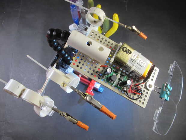 En primer lugar, explicaría la iluminación, la "pinza pulpo-como" es tomada de mi pecera rota luz.