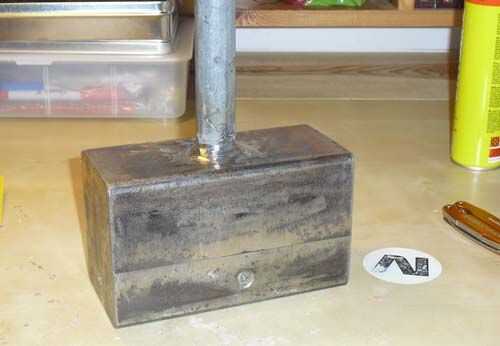 2. el metal utilizado aquí es de acero (3mm), a las especificaciones ((Ver PDF archivo). Uno puede ver las lenguas añadidas para cerrar más tarde el cuerpo de la cabeza del martillo. Las paredes laterales no son fijos todavía.