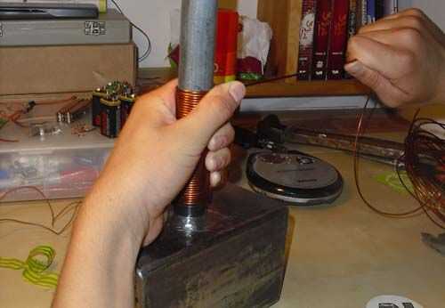 2. a continuación es trabajo hecho a mano pura – girar el martillo y tratar de mantener el cable como tanto como sea posible a la pared de la palanca como sea posible. En ese momento tuve ningún plan todavía cómo mantener el alambre fijo al mango.
