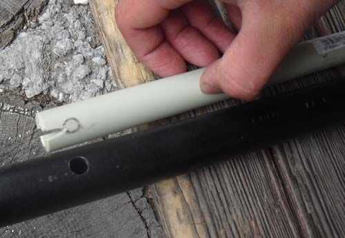 8. el lugar del interruptor fue marcado antes. La muesca (en lugar de canal) me permite llevar los cables al interruptor micro, que se "sentará" en el tubo de plástico. Interruptor y arranque cobre son 180 grados frente a la unos a otros.
