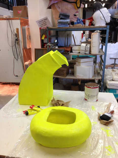 Ahora medio yeso, la pieza no puede ser despedida. Con una imprimación y capa de pintura, la superficie es llevada a una temperatura y una textura consistente.