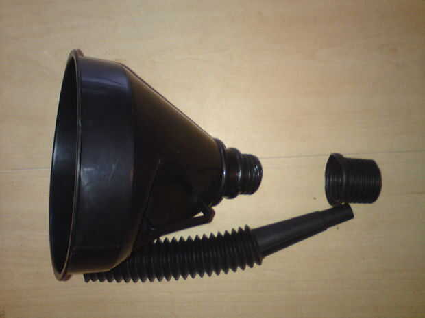 Ahora toma tu embudo, mina es una donde el tubo y el cono se desprenda. Es necesario cortar su embudo dejo un cono, y vio un pequeño collar con el hilo que el cono se conecta a y caliente este pegamento en el extremo de su arma - ahora puede atornillar en y fuera de la parte del Trabuco de su arma.