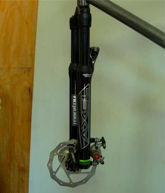 Nos quita la horquilla delantera rígida original y lo reemplazó con una horquilla de suspensión Manitou. Nosotros también atornillados en un Avid freno de disco en la parte delantera. Decidimos ir con discos mecánicos en lugar de hidráulica simplemente porque son menos costosos y menos complicado. El Avid BB7 son completamente ajustables. Se puede marcar en cada almohadilla por separado.