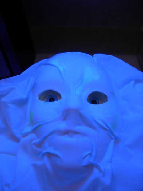 Pintura sellador necesario, blanco, neon azul para pupila, marcador negro, brillan en la oscuridad clara-puede ir con otro color para el alumno pero haz de neón que se brilla con UV - $4