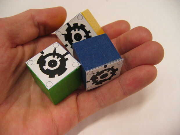 Trackmate es una iniciativa de código abierto para crear un sistema de seguimiento material barato, hágalo usted mismo. Usando el software de seguimiento del proyecto, cualquier ordenador puede reconocer objetos etiquetados y su correspondiente posición, rotación y la información de color en la superficie de proyección de imagen.
