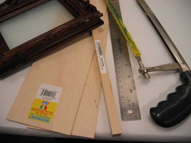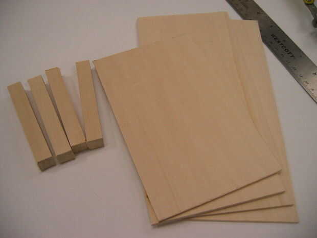 Medir la longitud y anchura del marco. Para crear los laterales de la caja, cortar dos tablas que miden la longitud de la caja y corte dos que mida el ancho de la caja - 3/16 de pulgada (para compensar el ancho de los dos lados de longitud de corte). También, cortar 4 pedazos de la barra cuadrada que son de 3 pulgadas de largo cada una. Siempre mida todo dos veces antes de cortar!