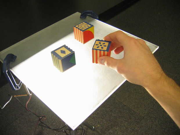 Utiliza un sistema como el mostrado aquí, pueden seguir objetos físicos sobre una superficie y utilizarlos para controlar y manipular aplicaciones espaciales en su computadora. Puesto que se han etiquetado cada uno únicamente objetos, pueden asignarse fácilmente a acciones particulares, información o relaciones. Ver el proyecto LusidOSC para más detalles sobre las aplicaciones espaciales.