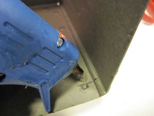 3. Añadir pegamento caliente y pegar un bloque en cada esquina. El marco debe quedar ahora bien encima de los bloques. Si parece que el marco pueda caer a través, intente usar bloques más grandes.
