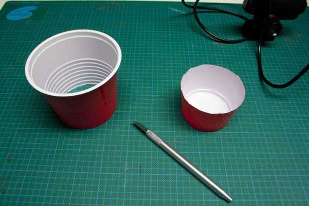 4. Coloque la cámara en la parte superior del vaso de plástico con el lente hacia arriba.