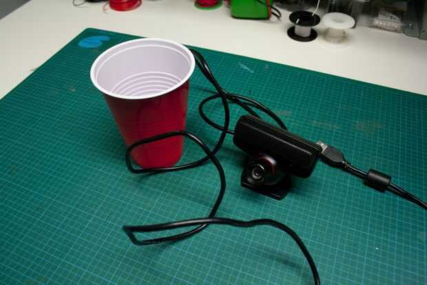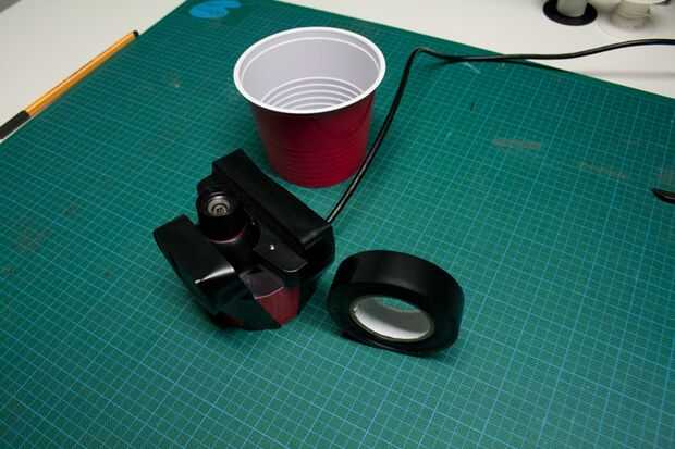 Después de este paso debe tener un vaso de plástico con una webcam hacia arriba frente a que se le atribuye.