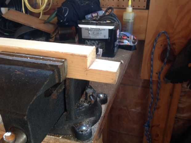 Nota, para hacer empalmes del regazo, primero sacar qué sección debe ser extirpado (las dimensiones en estas fotos no son exactas) y luego cortar con una sierra a contrahilo. Por último, utilice un cincel y un martillo para cuidadosamente retire y limpie la sección partiendo desde el extremo. Utilice un tornillo de banco si es posible. Mirar a las imágenes proporcionadas por la dirección.