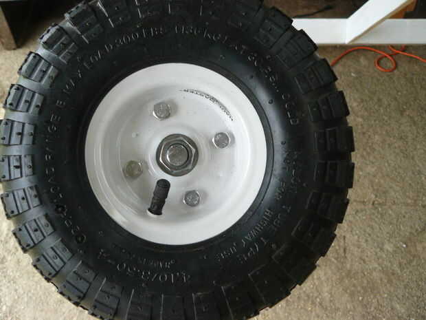 6. Coloque la rueda en la barra y una tuerca de seguridad para retener firmemente en su lugar.