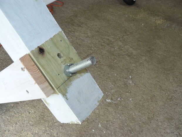 Nota: Estas ruedas de montaje es un proceso complicado porque el marco básico ya es bastante pesado. He conseguido por volcar la estructura parcialmente de lado. Una vez que termine un lado, es aún más complicado porque tenderán a rodar una vez que un conjunto de ruedas en el suelo. La alternativa habría sido fijar las ruedas a los postes antes de empezar pero que trae en un conjunto de otros problemas con el marco constantemente tratando de rodar alrededor.