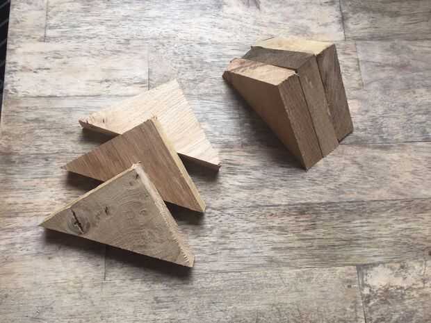 Siguiente pregunta es "¿cómo atribuimos las ruedas?"... nos acomodamos en la fabricación de bloques triangulares que se fija al marco con tornillos y pegamento y un agujero central mantendría el axel. El resultado se veía bien pero el momento que alguien se sentó en ellos, las presiones torsionales sólo rompieron los bloques aparte y esquilan.