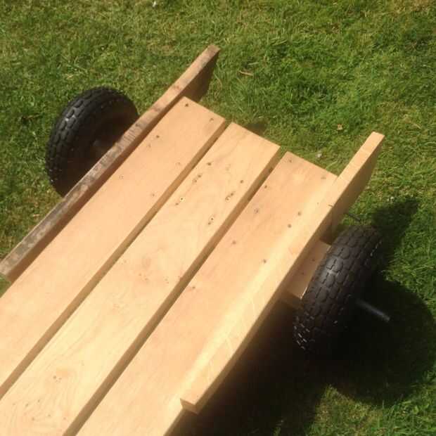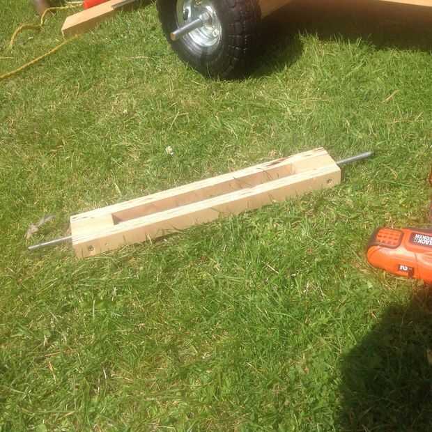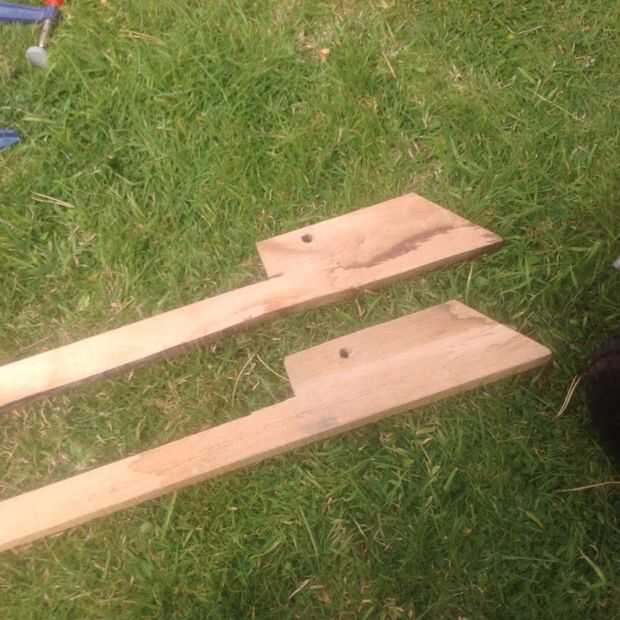 Un bar montado en un marco y atornillar detrás de la rueda trasera. Dos palas entonces se crean con un agujero correspondiente a la barra de perforados en ellos. Una vez montado se encuentran por defecto pero si agarraban y yank arriba se empuje el otro extremo sobre la tierra y a sí mismo desacelerar.