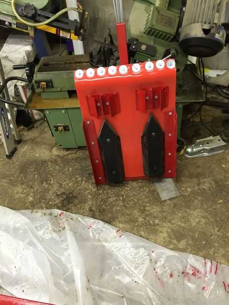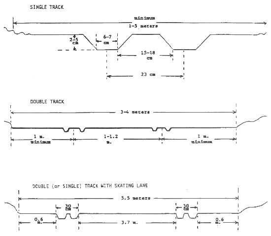 El setter de la pista se hace de un pedazo pesado de 1/4 en acero de la placa (24 en por en 20) con 2 esquís en la cara interior para definir la pista de ski. Bisagras hacia arriba y hacia abajo la parte de atrás del marco peluquero y puede ser levantado y bajado con un actuador lineal de alta resistencia 12V. El setter de la pista se produce cuando los descensos de la preparación o temprano en la estación antes de que no hay suficiente nieve para establecer una pista. En la parte delantera de la placa de setter de pista es un soldado con autógena 2 en labio ángulos hacia arriba a 45 grados para que el tracker no excavan en la nieve. En la cara interior, justo en frente de los esquís, está atornillado a una Asamblea de soldados cortador que corta un surco en la nieve y protege los esquís contra el daño debe llegar un registro o alguna otra obstrucción. Inicialmente usé 1/8 acero, golpeó un tronco sumergido oculto, había doblado para arriba y había rehecho con 1/4 en acero. Usé 1/4 en la hoja de poliuretano entre la placa de acero y los rieles para que se deslice más fácilmente. Los esquíes también fueron hechos de poliuretano, aunque es difícil hacer estas cosas (que se derrite en lugar de cortes con una sierra de mesa) y podrían hacerse de otros más fácil cortar plásticos o incluso madera. Véase el esquema adjunto para el tamaño y el espaciamiento de los esquís. Los esquíes deben 1 3/4 pulgadas de espesor y 16 largo, 5 de ancho en su base disminuyendo a 2 3/4 pulgadas (7 cm) en la profundidad de la ranura. Los esquís se deben establecer en 1/4 de 9 (23 cm) aparte cuando se mide de centro a centro. Había avellanado de los agujeros de 1/4 de pulgada y me sujeto los esquís a la placa de tracker con pernos de carruaje de 1/4. El perseguidor tiene 2 en ángulo de hierro a lo largo de los lados de la placa así que cuando todo el camino se deslizará hacia los lados en laderas. Hice mi tracker 20 pulgadas de ancho. Si tuviera que hacerlo otra vez probablemente iría más amplia - 24-26 pulgadas por lo que sería más espacio entre el lado de la placa y el exterior de los esquís.