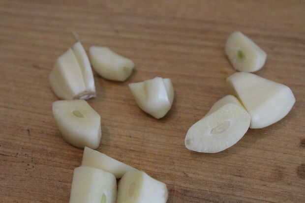 Picar el ajo, como se muestra.
