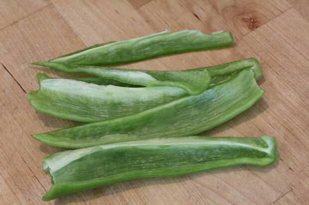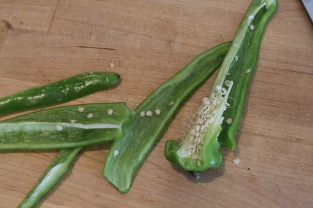 Abrir el aquí y las semillas a la descarga. Luego cortar en trozos más pequeños.