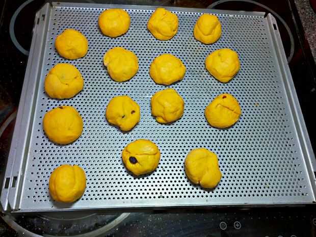Cuando haya hecho los bollos, colocarlos en una placa para horno. Papel de horno no es necesario. Poner una toalla en ellos y déjelos subir durante 30 minutos.