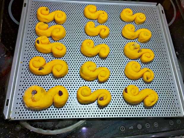 Tradicional sueca Navidad Lucia bollos - Lussebullar Lussekatter & (13 / 15 paso)