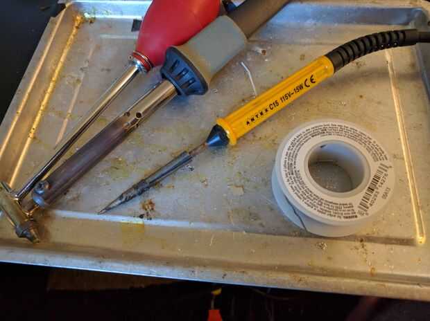 - Un soldador de 30W 15: me encanta mi Antex C15, pero cualquier hierro 15-30W de RadioShack, Walmart, Ebay, o Amazon funciona muy bien.