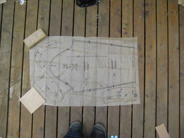 Poner las piezas del patrón en el piso y fotografiarlos.