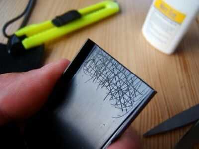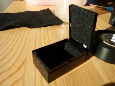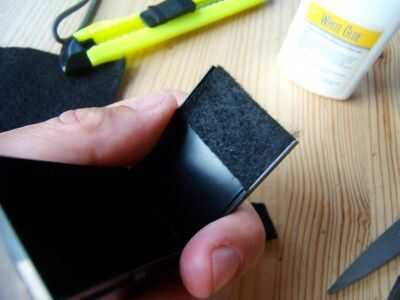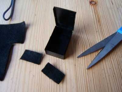 3. marcar el plástico para dar el pegamento algo para morder y pegar el fieltro en el interior de la caja.