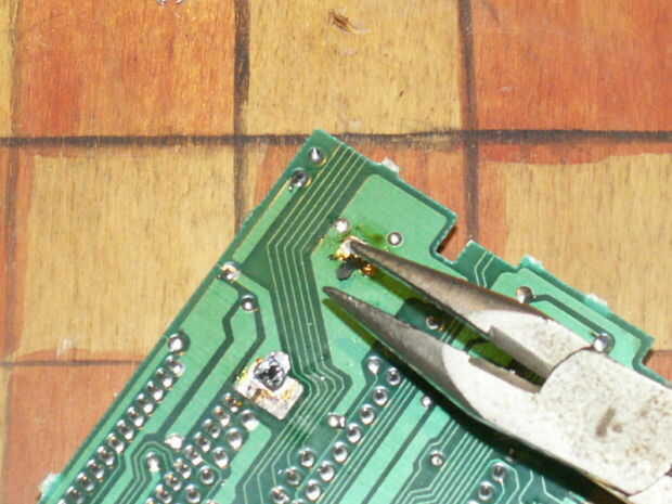 A continuación, una vez retirada la soldadura, usted puede presionar los pernos a través de la Junta para aflojarlo, retire la batería.