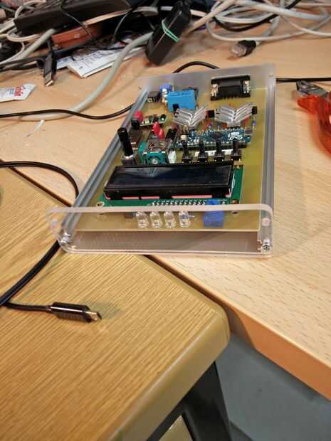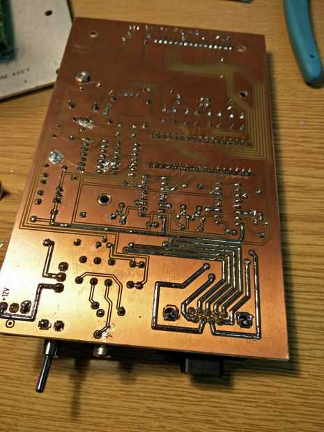Y luego hice la compilación antigua circuitos: imprimir en hoja de acetato, exposición, desarrollo y grabado con ammoniumpersulfat.