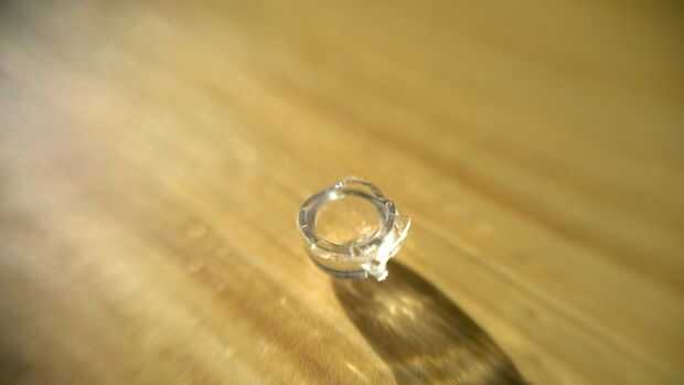 La parte clara de la lente está hecha de dos materiales distintos. Outter está hecho de plástico transparente duro, interno de la lente está hecha de goma desconocen claro material, que yo no puedo reconocer, por debajo de la lente del thwe hay material amarillo y finalmente hay un elemento de emisión ligdt en forma de pequeña plaza.