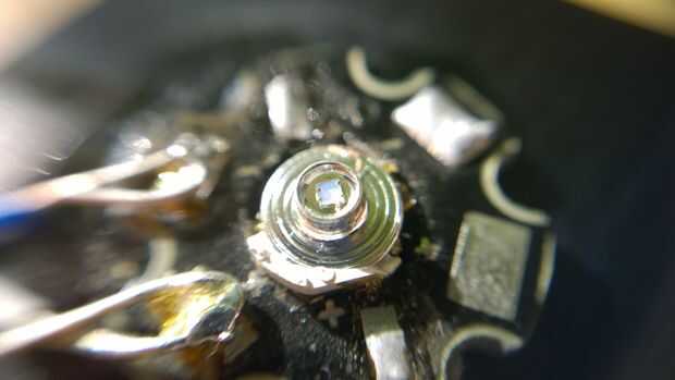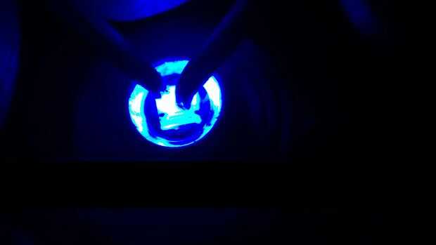 Empezar a tocar el elemento cuadrado con pernos. Que verá la luz azul fuerte... Esperar... AZUL?! ¿No es el LED blanco? Resulta que el color blanco se logra con el material amarillo mencionado antes. Si sabes lo que es posible, publique en el comentario para que todos podamos aprender algo nuevo!