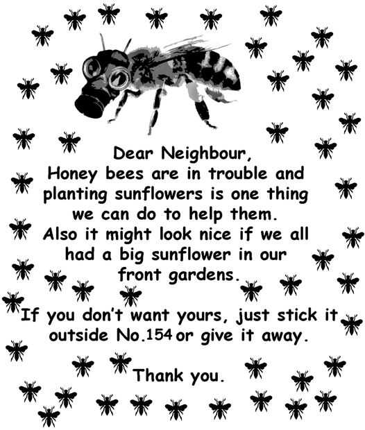 Este proyecto comenzó con la idea de tomar sólo algunos girasoles en la yarda estéril, concreta en el trabajo para atraer a las abejas; pero porque tenía 57 semillas sobrantes se convirtió en un proyecto más grande a cada uno alrededor de mí para nutrir un girasol.