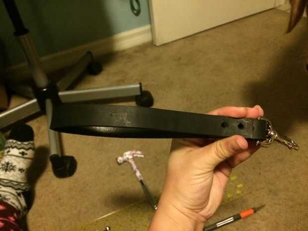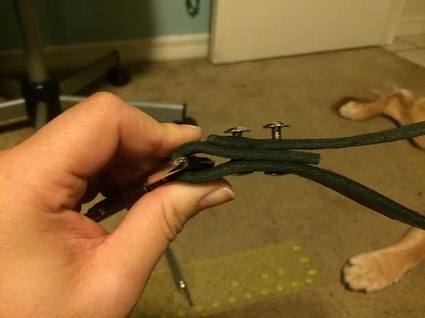 Mantener el cuero alineado, empuje la parte "hembra" del tornillo (la parte del túnel). Si usted ha utilizado cuero de 9/10, debe tener la parte superior del tornillo alinee en el mismo nivel que el cuero.