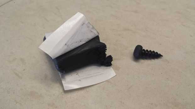 Corte con cuidado la cabeza de un tornillo, asegurándose de dejar suficiente hilo y punto para verse fácilmente. Utilice una pequeña de materia pegajosa y pegarla en el lado opaco de la punta del tornillo.