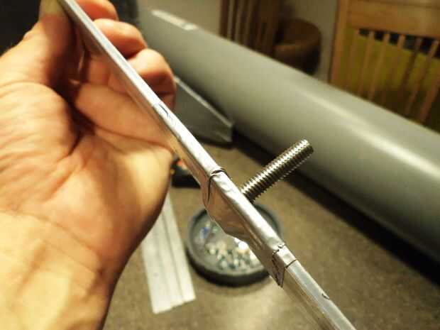 No uso placas, pero barras de aluminio en el interior del tubo para yakproofness más. Perfore previamente las barras, inserte los tornillos, cinta, poner las varillas en el lugar en el interior del tubo, perno en el exterior y el srew finn y quilla en su lugar. Fácil de manto, fáciles de desmontar.