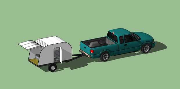 Decidí hacer un estilo tradicional de gota – uno con una galera desmontable para fácil carga y dos puertas. Aquí está una foto de mi idea inicial de diseño, hecho en Google Sketchup, un programa gratuito ofrecido por Google. El carro es mi Sonoma GMC – un V6 capaz de remolcar un remolque pequeño, pero no mucho más.