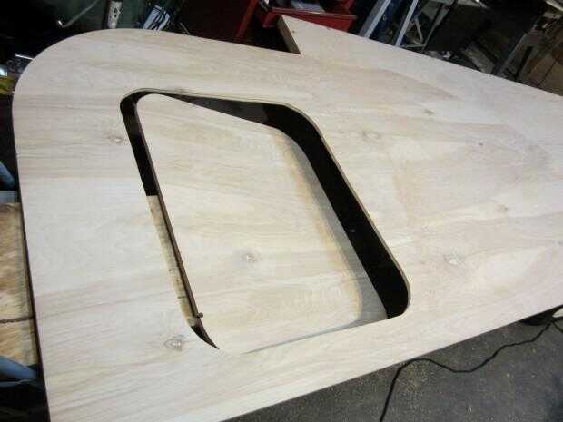 Una de las puertas solía para trazar la forma de la madera contrachapada. Esta es una pared lateral con todos los atajos. Utilicé una sierra de calar para hacer los cortes.