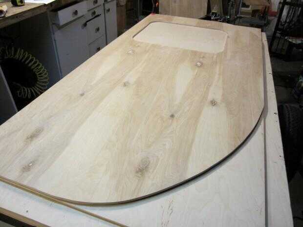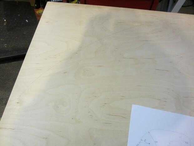 voy a hacer las paredes laterales de madera contrachapada de 1/2" 4 'x 8'. Dibujar la curva que da el remolque de la lágrima la buena forma (la línea es apenas visible):