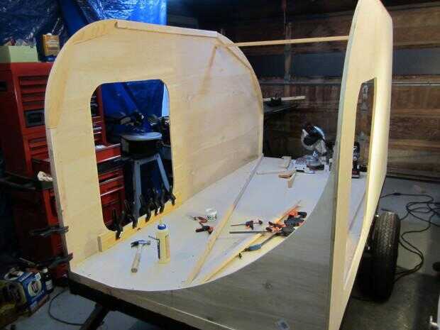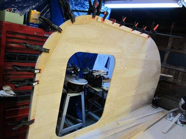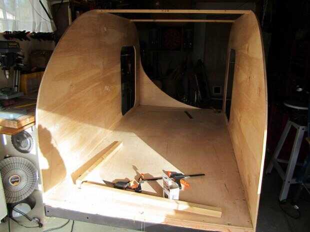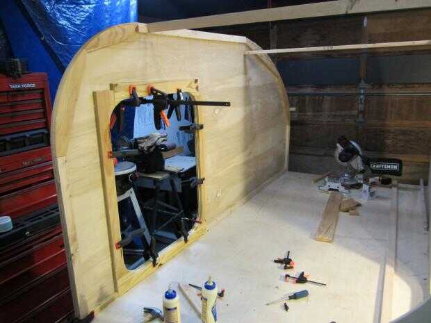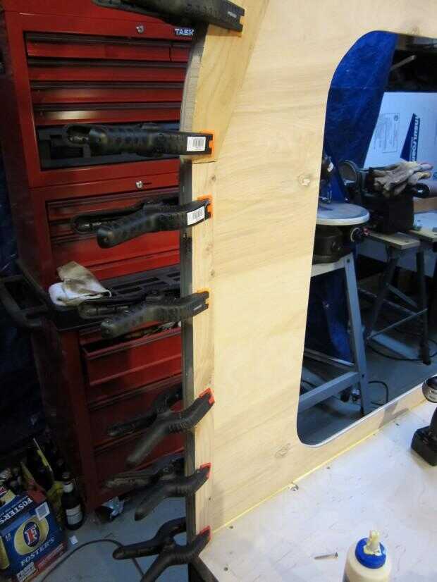 Es la segunda pared, pegada y asegurada con tornillos al armazón de la planta. Dos vigas temporales mantienen la parte superior de las paredes.
