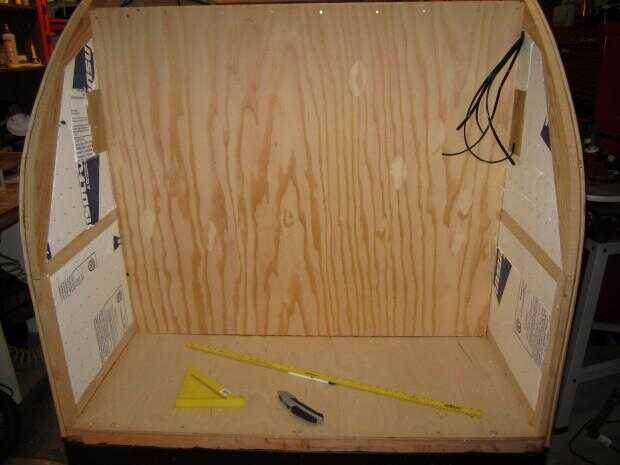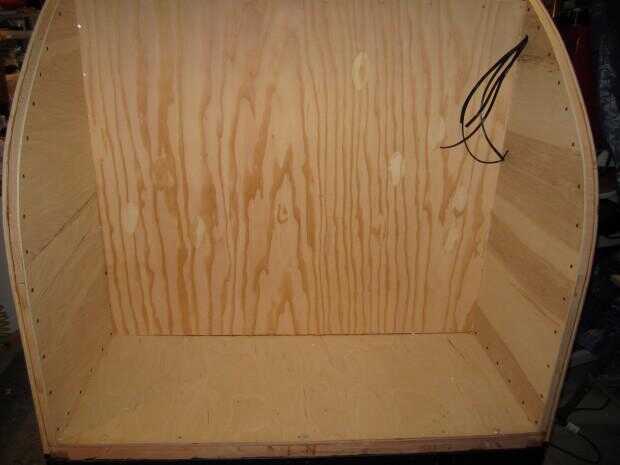 Aislante de las paredes de la "zona de cocina". Las vigas horizontales en la pared son soporte para la cubierta.