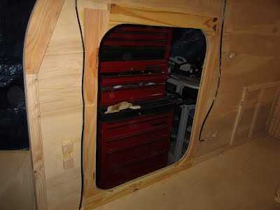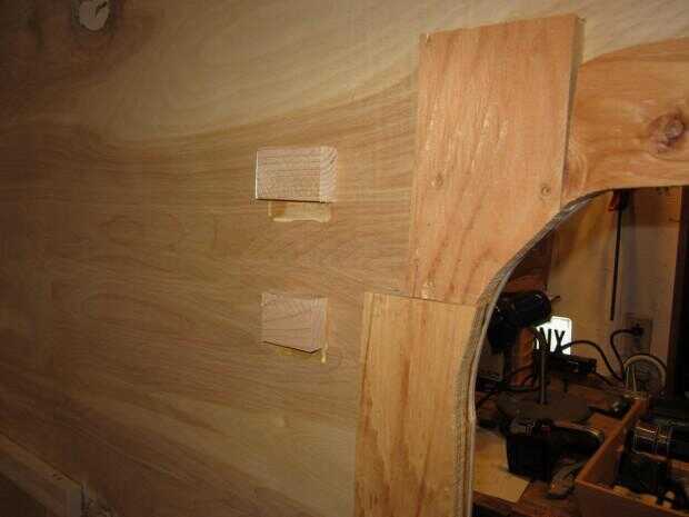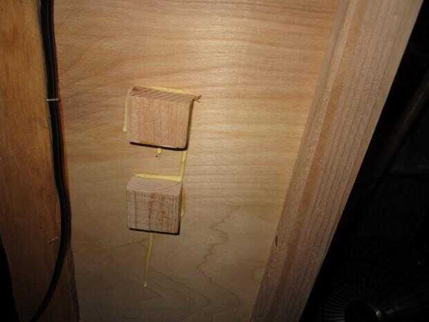 Pegar unos bloques de madera de desecho en las paredes para los interruptores de luz. Puedes ver un par en la esquina inferior izquierda y la esquina superior derecha de la imagen. El inferior es para las luces de lectura. Tengo dos dos flexible LED lectura luz de Ikea que te puse en la pared. También tengo este espejo de Ikea que voy a poner en la cabina para mi esposa.