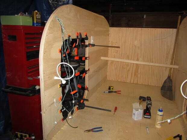 La piel interior instalada en la segunda pared lateral también. Se trata también de contrachapado de 5mm. El lado "bueno" enfrenta el interior.