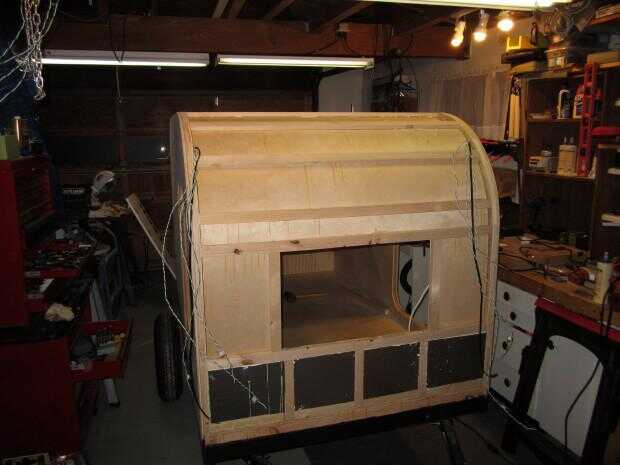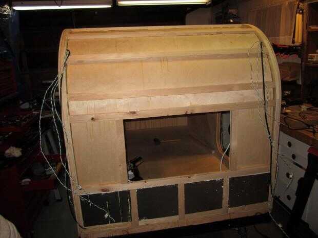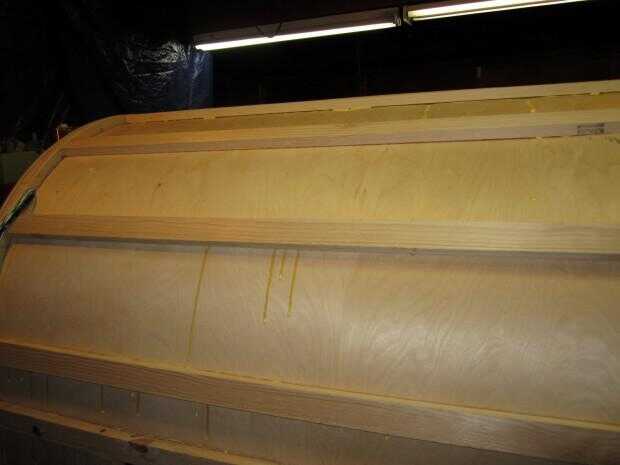 Piel interior de la pared frontal y techo instalado. La piel es contrachapado de abedul de 1/8".