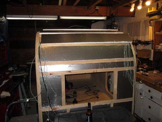 Corte el aislamiento de la espuma, pero no todavía en su lugar. Voy a tener que desenredar los cables eléctricos y saber qué hacer con ellos primero. A cada lado del remolque tengo: