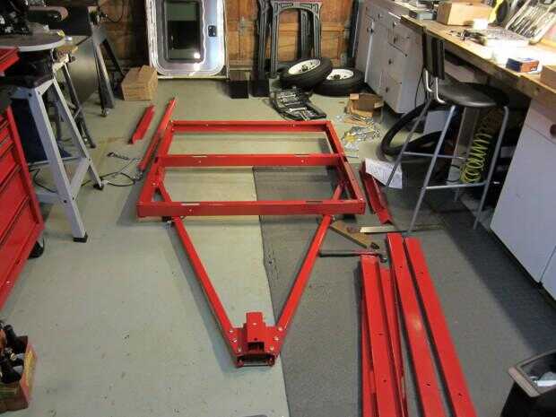 Voy a tener que pintar el bastidor del remolque negro. Rojo con gris aluminio no vaya bien.