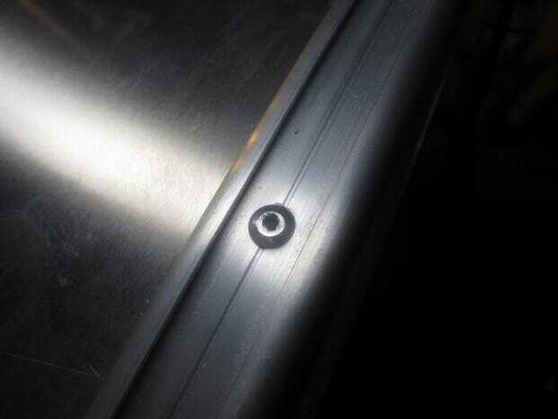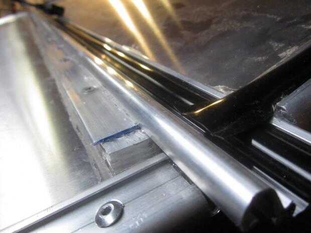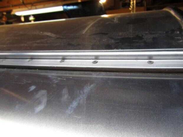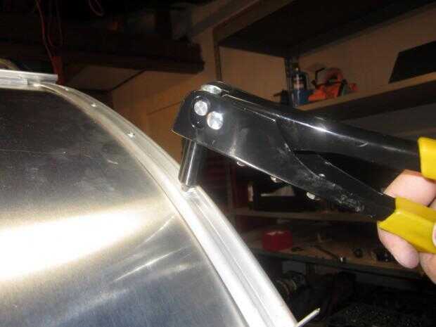 Estoy instalando la moldura en los lados de la escotilla con remaches de aluminio.