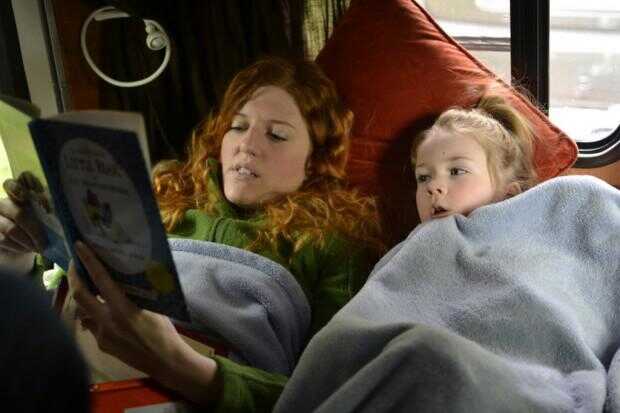 ... mientras que Madeline observa "Pistas de Blues" en el Kindle Fire.