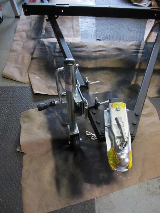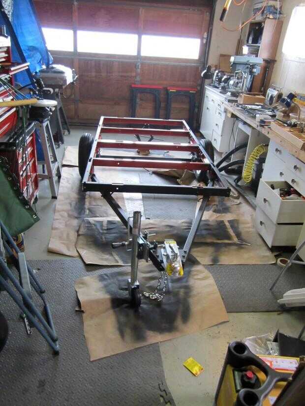 El remolque se realiza. He instalado las ruedas y el gato de remolque. No concedo las defensas, sin embargo, lo haré cuando la lágrima está en la parte superior del remolque.