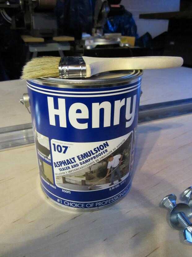 asfalto emulsión para pintar el marco de madera y madera contrachapada en el lado que se va a conectar al remolque. Esto se supone para proteger la madera contra el agua.
